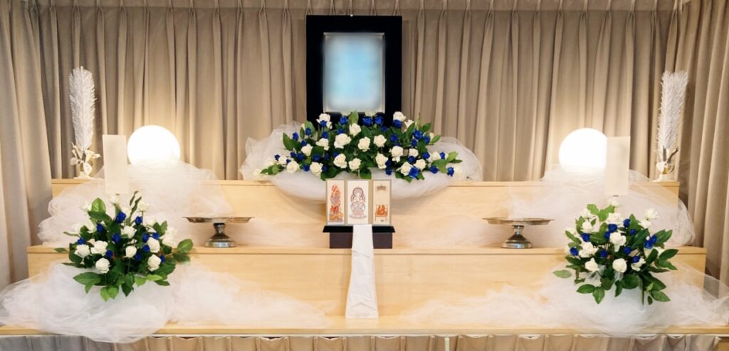 爽やかな雰囲気の花祭壇【デルフィニウム】