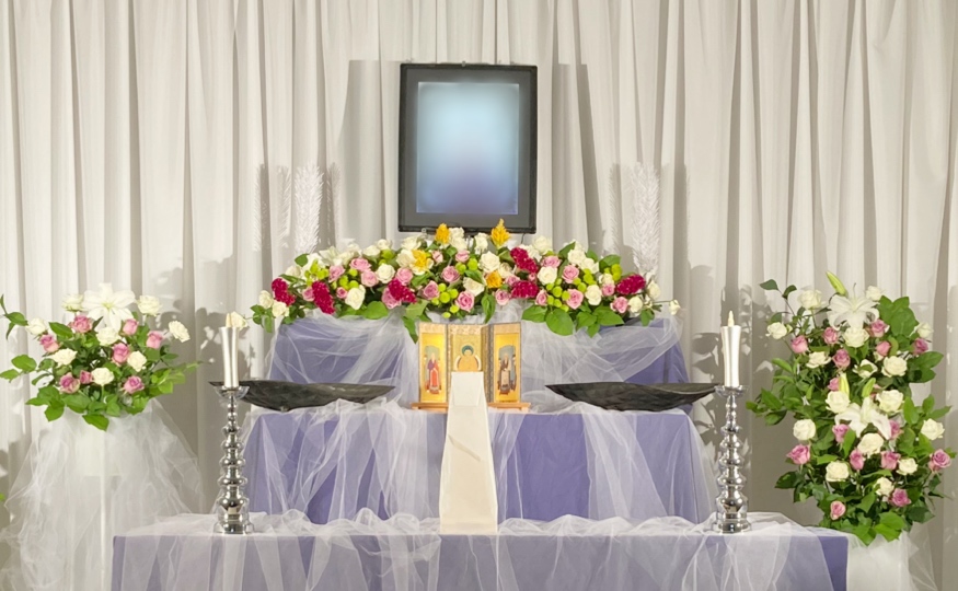 好きな色を取り入れた花祭壇【トルコキキョウ・ユリ】