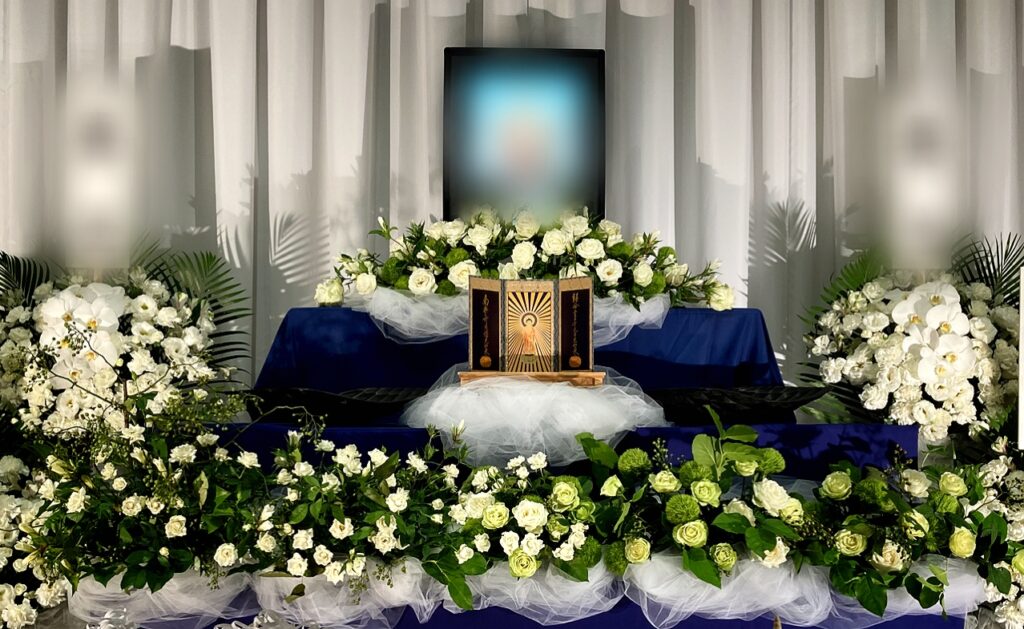 爽やかな雰囲気の花祭壇【デルフィニウム】