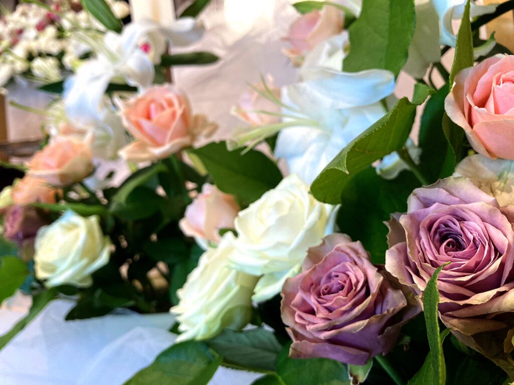 好きな色を取り入れた花祭壇【トルコキキョウ・ユリ】